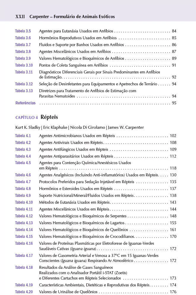 usados no tratamento de animais exóticos, tabelas de conversão, laboratórios selecionados que realizam testes para