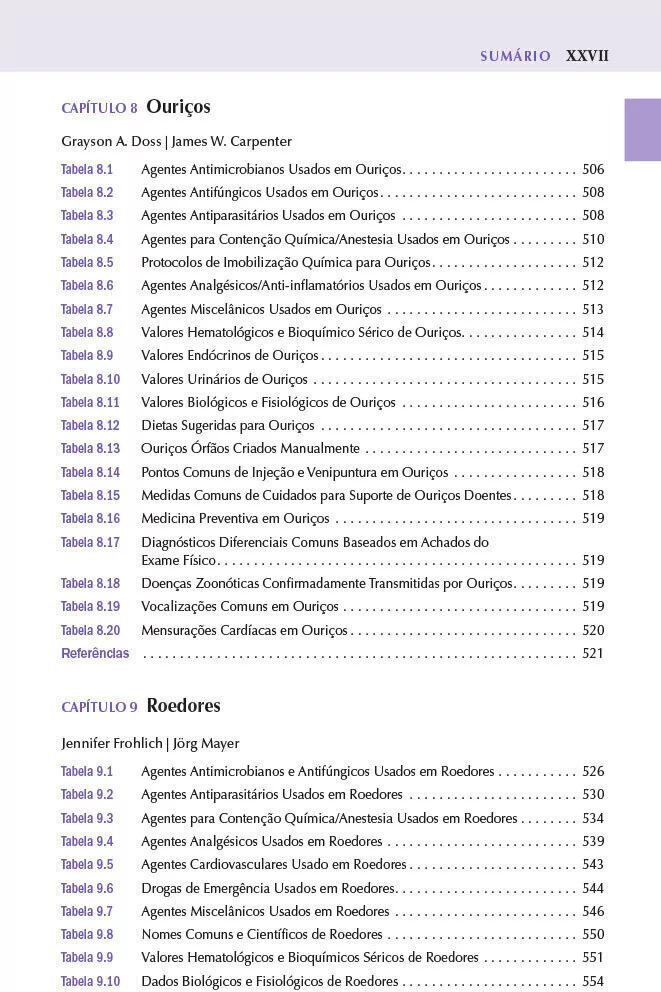 furão, porco miniatura, primatas e nativos de vida livre. Além disso, há uma seção atualizada sobre “Tópicos